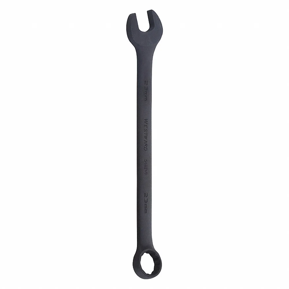 WESTWARD 54RZ49 Combination Wrench, Alloy Steel, Black Oxide, 23 mm Head Size, 11 7/8 Inch OAL, Offset