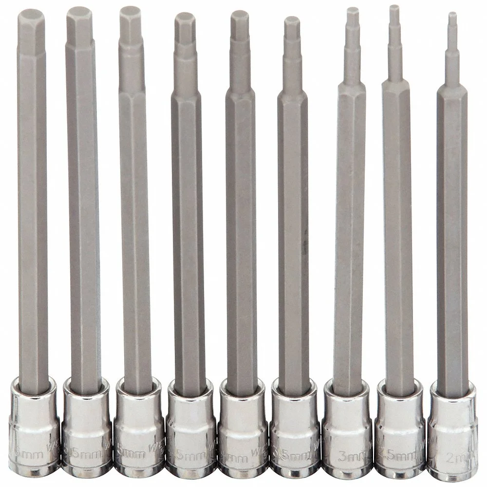 WESTWARD 54TM15 Socket Bit Set, 1/4 Inch Drive Size, 7 Pieces, 2 To 6mm Tip Sizes, Metric