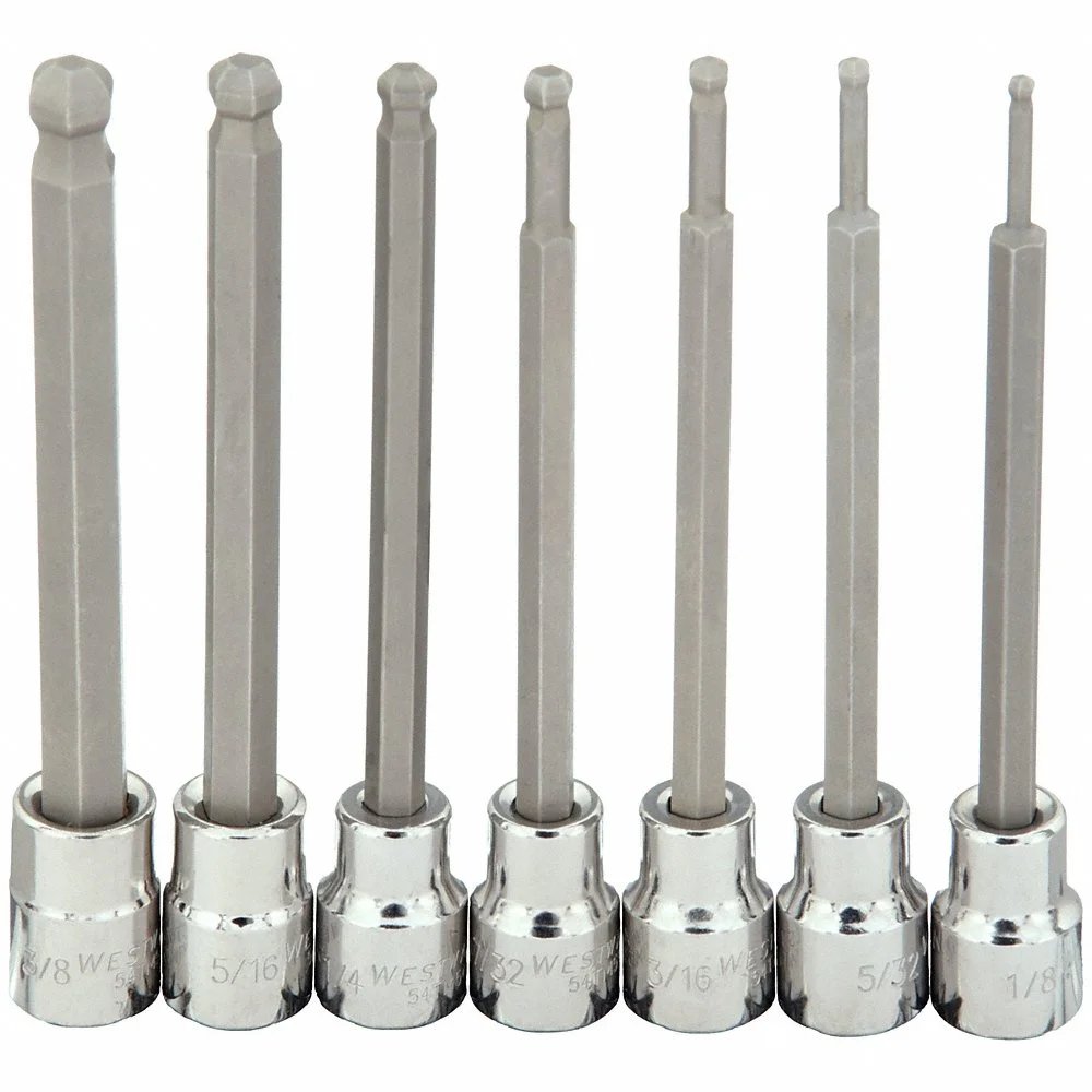 WESTWARD 54TM49 Socket Bit Set, 3/8 Inch Drive Size, 8 Pieces, 1/4 To 7/32 Inch Tip Size