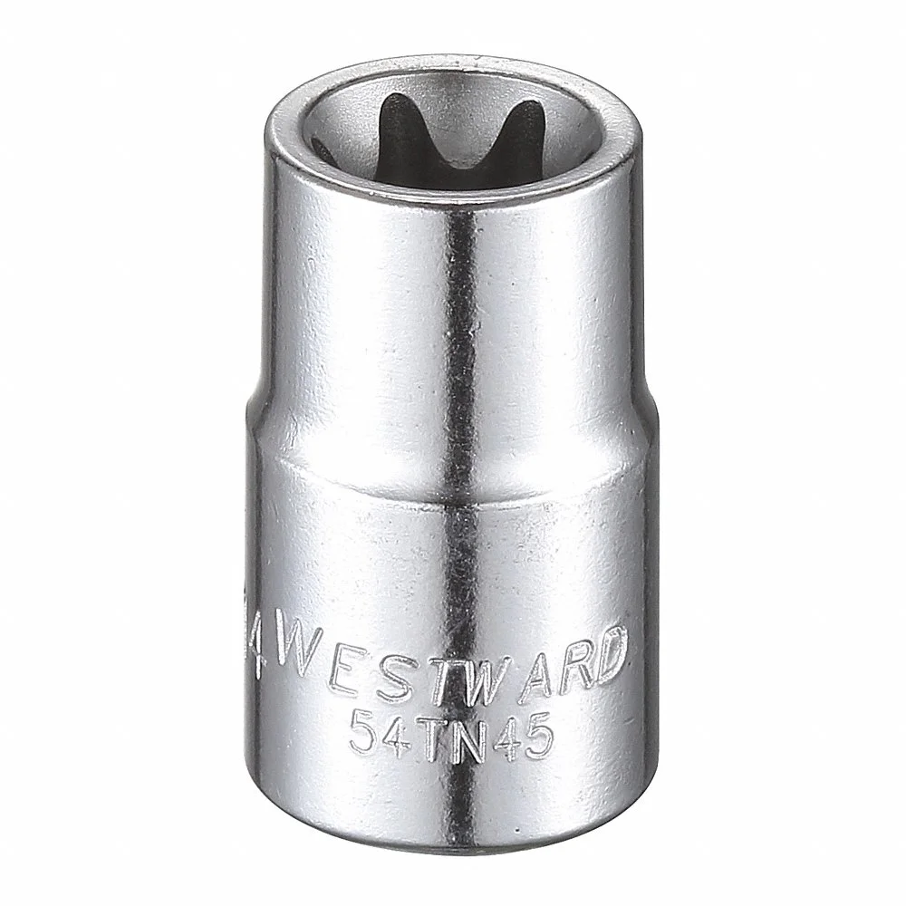 WESTWARD 54TN45 Socket, 3/8 Inch Drive Size, E14 Socket Size, External Torx Chrome