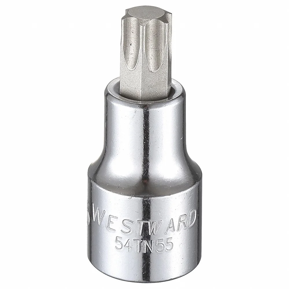 WESTWARD 54TN55 Socket Bit, 1/2 Inch Drive Size, Torx Tip, T55 Tip Size, 2 1/2 Inch Length, Torx, Chrome