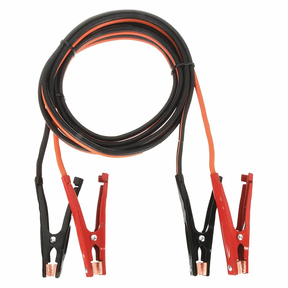 WESTWARD 5RXF2 Booster Cable, Crimped, 4 AWG, Spring Clamp Grip, 20 Ft. Cable Length, Black/Orange, 400 Amp