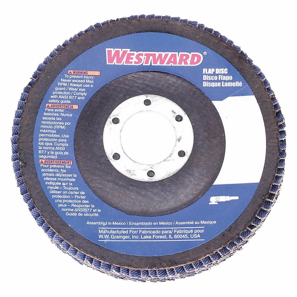 WESTWARD 66261180367 Flap Disc, Type 29, 4 1/2 Inch x 7/8 Inch, Zirconia Alumina, 80 Grit, Std Density