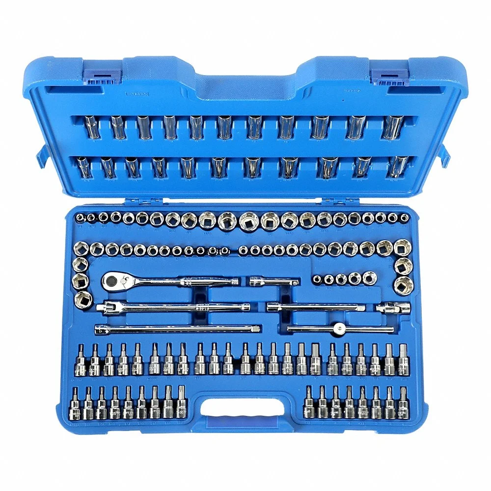 WESTWARD 6XZ82 Socket Wrench Set, 3/8 Inch Drive Size, 125 Pieces, 12-Point/ 6-Point/ 8-Point