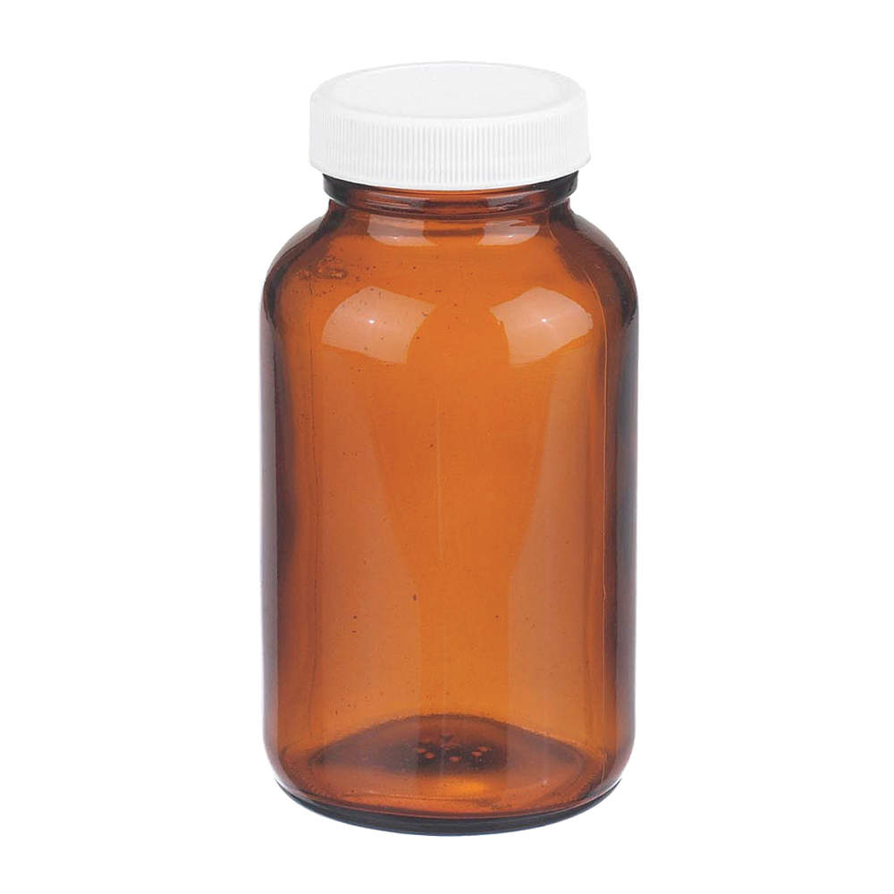 WHEATON W216942 Bottle, Soda Lime Glass, 250 mL, 8 fl oz Capacity, Amber, Packer, 66 mm Dia