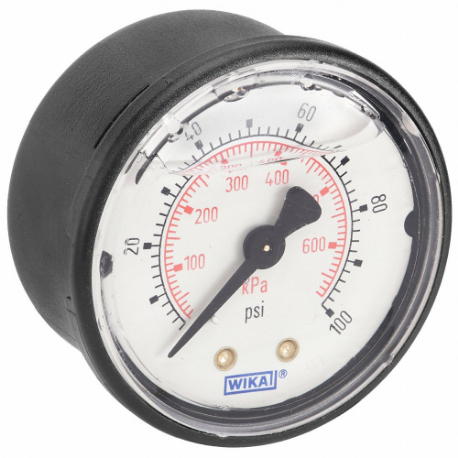 WIKA 113.13.20.100.B Commercial Pressure Gauge, Liquid-Filled, 0 To 100 PSI, 2 Inch Dial, Center Back