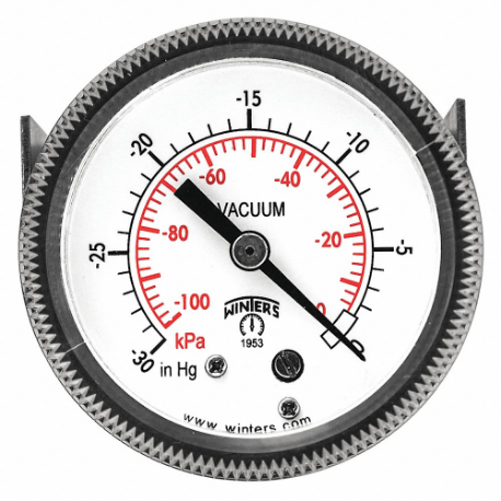 WINTERS INSTRUMENTS P9U901424UC Panel-Mount Vacuum Gauge, U-Clamp, 30 To 0 Inch Hg, 2 Inch Dial, 1/8 Inch Npt Male