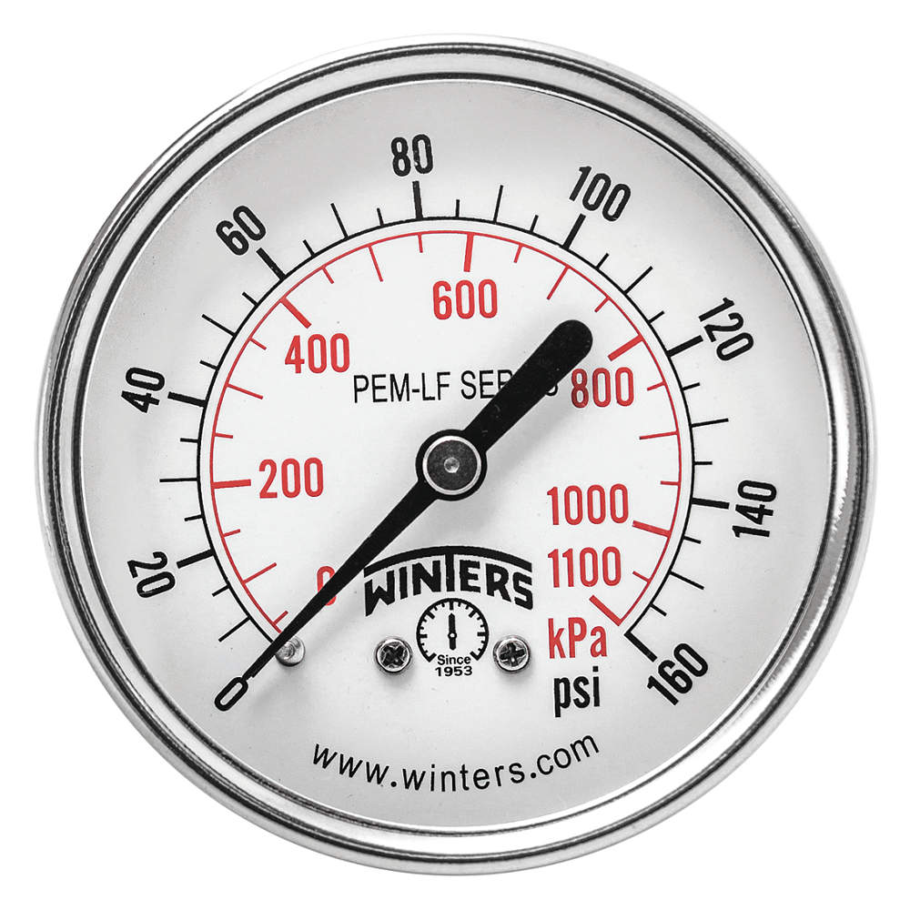 WINTERS INSTRUMENTS PEM1440LF Gauge Pressure 2-1/2 Inch 0 to 160 psi