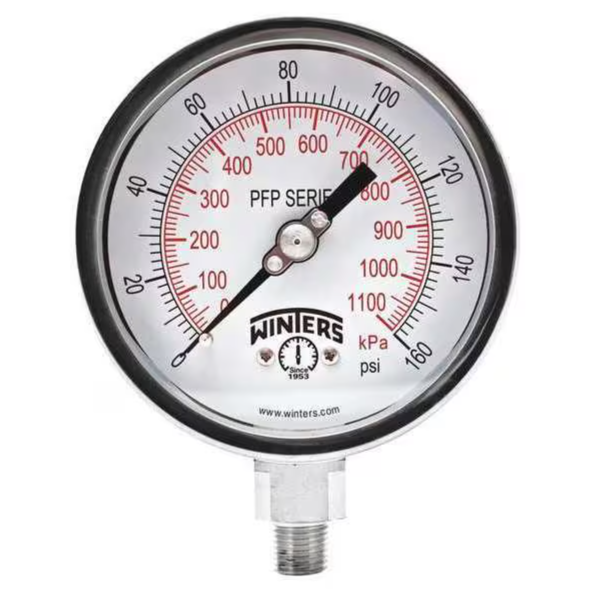 WINTERS INSTRUMENTS PFP645 Gauge, Ss 4 Inch, 0-160 Psi/Kpa 1/4 Inch, Npt Bottom