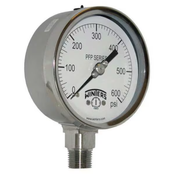 WINTERS INSTRUMENTS PFP663R1 Ss 4 Inch, 0-600 Psi 1/2 Inch, Npt Bottom