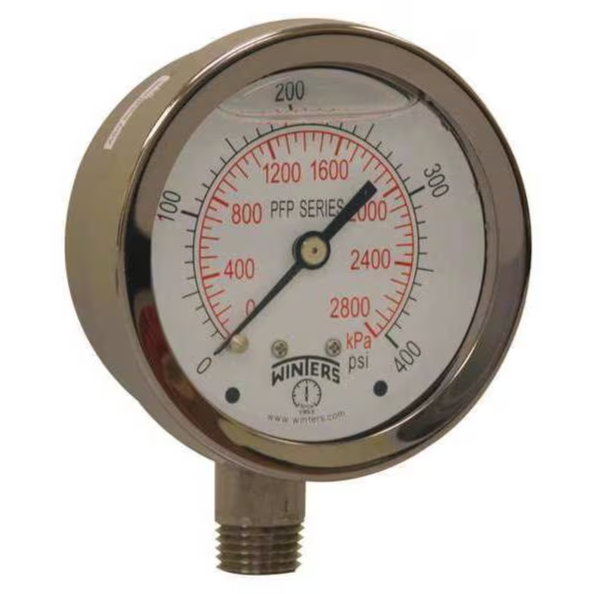 WINTERS INSTRUMENTS PFP880 Gauge, Ss 2.5 Inch, 0-400 Psi/Kpa 1/4 Inch, Npt Bottom