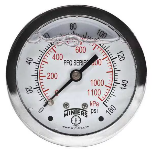 WINTERS INSTRUMENTS PFQ170 Gauge, Ss 2.5 Inch, 0-160 Psi/Kpa 1/4 Inch, Npt Back