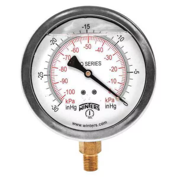 WINTERS INSTRUMENTS PFQ700 Quality Filled 4X1/4 Inch, Npt Btm 0/30 Inch, Vac/Kpa
