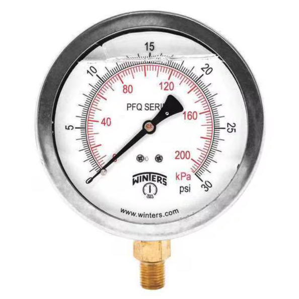 WINTERS INSTRUMENTS PFQ709 Quality Filled 4X1/4 Inch, Npt Btm 0/30 Psi/Kpa