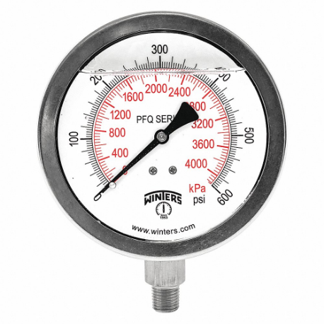 WINTERS INSTRUMENTS PFQ776-DRY Industrial Pressure Gauge, Field-Fillable, 0 To 600 Psi, 4 Inch Dial, Bottom