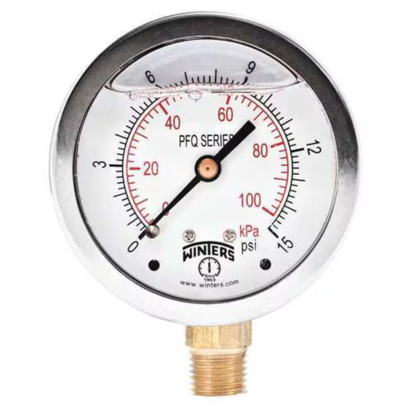 WINTERS INSTRUMENTS PFQ800 Gauge, Br 2.5 Inch, 0-15 Psi/Kpa 1/4 Inch, Npt Bottom
