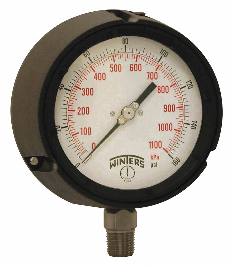 WINTERS INSTRUMENTS PPC5065G-SG45 Pressure Gauge, 0 To 160 Psi Range, 1/2 MNPT, +/-0.5% Gauge Accuracy