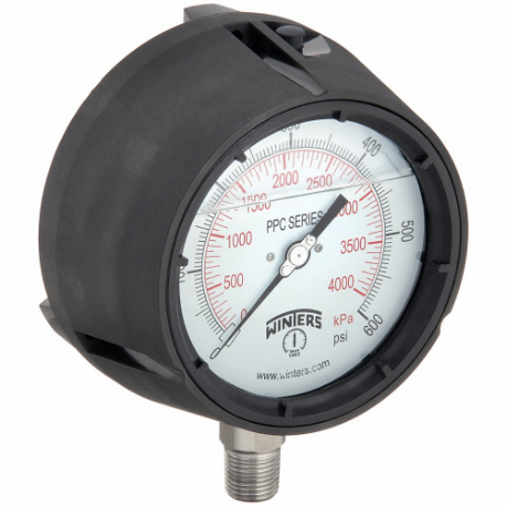 WINTERS INSTRUMENTS PPC5069G-SG45 Process Pressure Gauge, 0 To 600 Psi, White, 4 1/2 Inch DiaL, Liquid-Filled