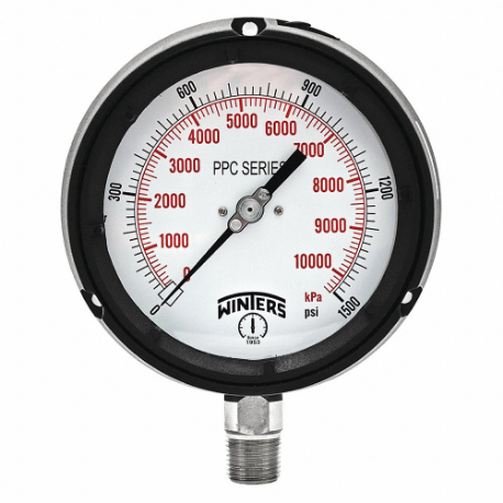 WINTERS INSTRUMENTS PPC5071-SG45 Process Pressure Gauge, 0 To 1, 500 Psi, 4 1/2 Inch DiaL, 1/2 Inch Npt Male, Bottom, Ppc
