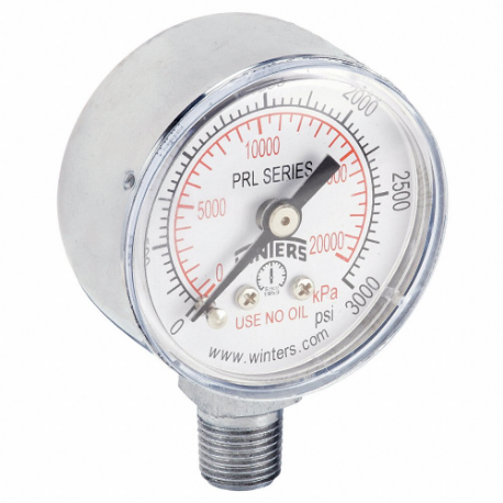 WINTERS INSTRUMENTS PRL038 High-Pressure Compressor Gauge, 0 To 3000 PSI, 1 1/2 Inch Dial, 1/8 Inch Npt Male, Prl