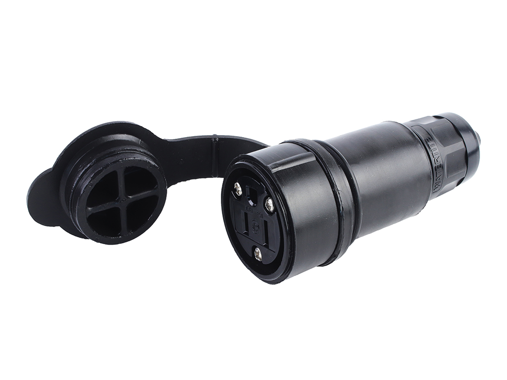 WOODHEAD 1301460061 15W47BLK Extra-Hard Outdoor Use Connector, 2 Pole/3 Wire, 125V, Black, Silicone Husk