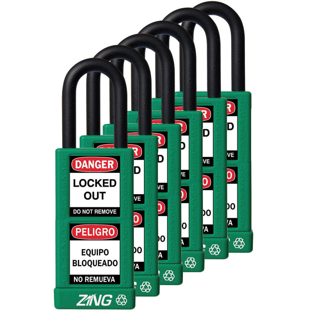 ZING 7091 Lockout Padlock Keyed Alike Green 1/4 Inch