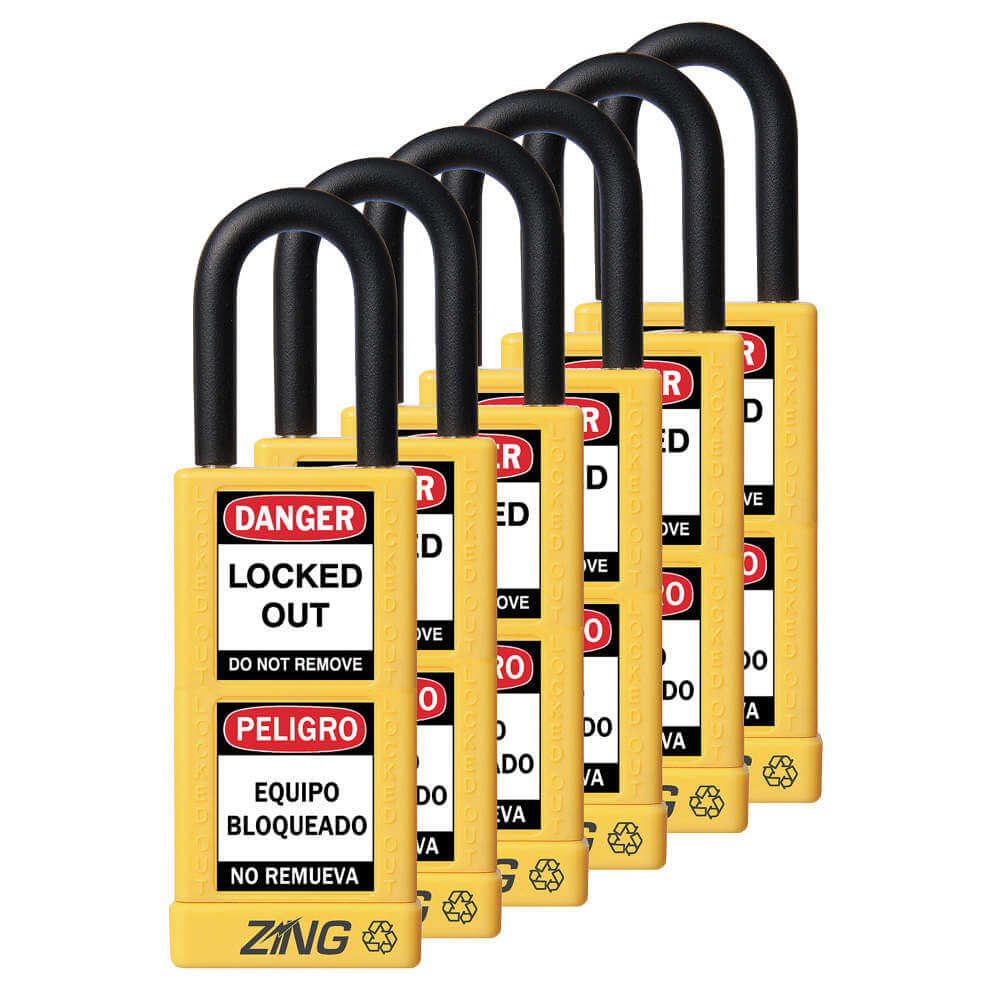 ZING 7093 Lockout Padlock Keyed Alike Yellow 1/4 Inch